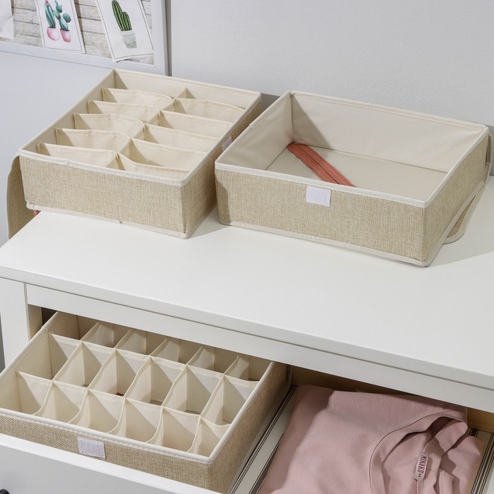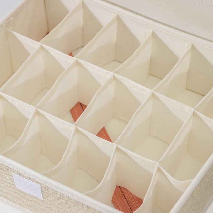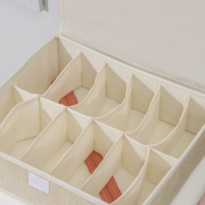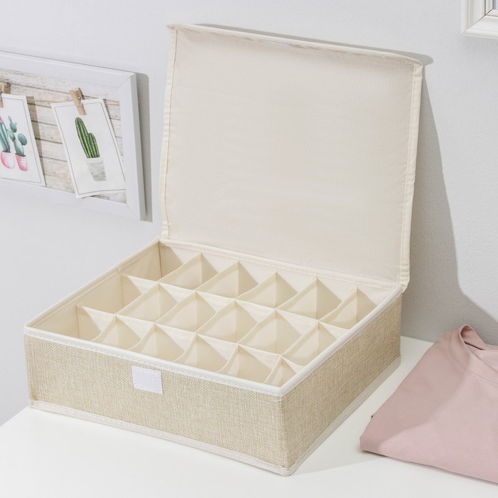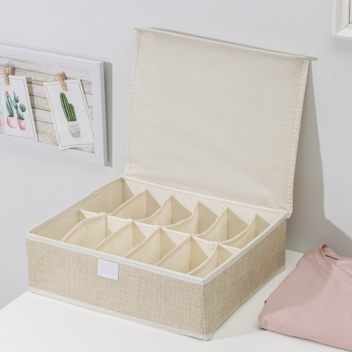Органайзер для хранения белья LaDо́m «Франческа», 9 ячеек, с крышкой, 35×30×12 см, цвет бежевый