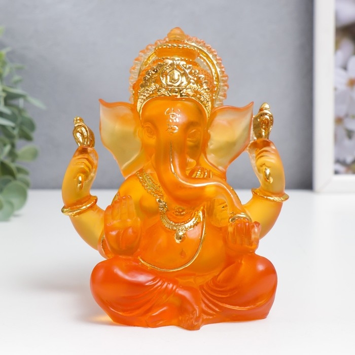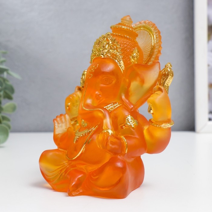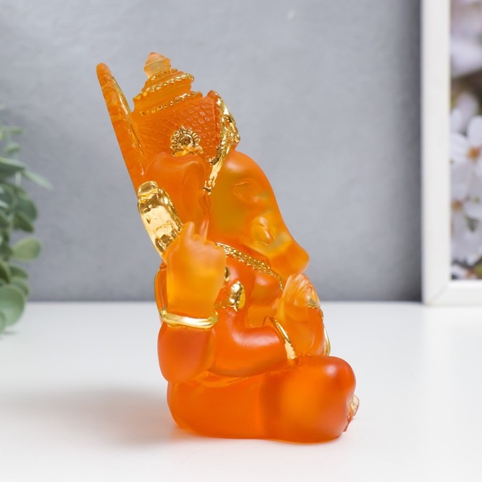 Сувенир полистоун "Ганеша - Индийское божество" оранжевый с золотом 14х8х7 см