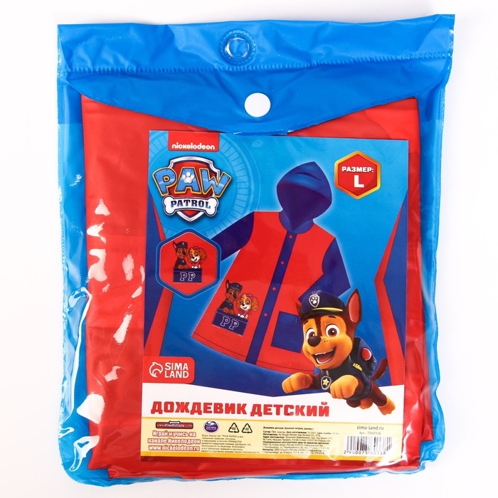 Дождевик детский, размер L, 110-120 см , Щенячий патруль