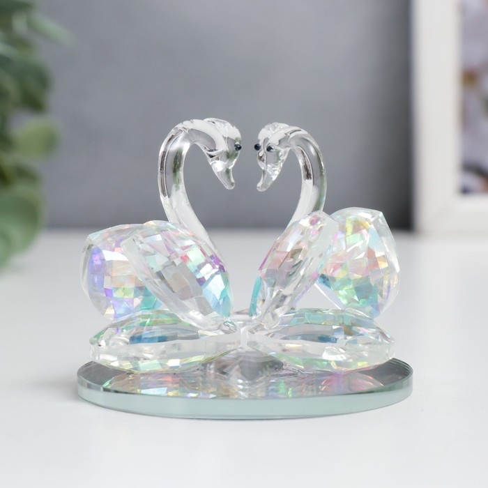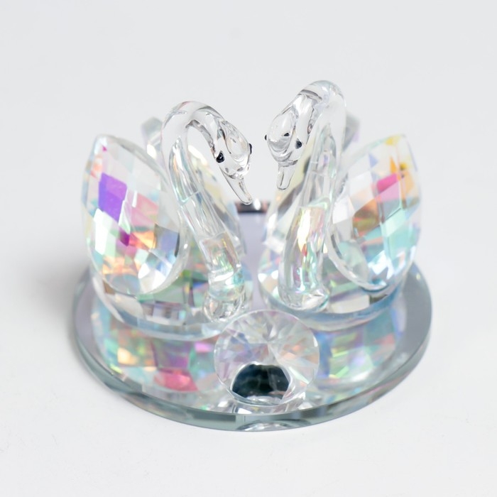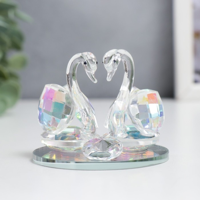 Сувенир стекло "Лебеди с бриллиантом" прозрачная голография 6,5х6х5 см