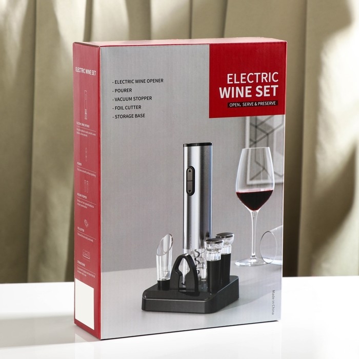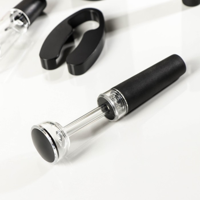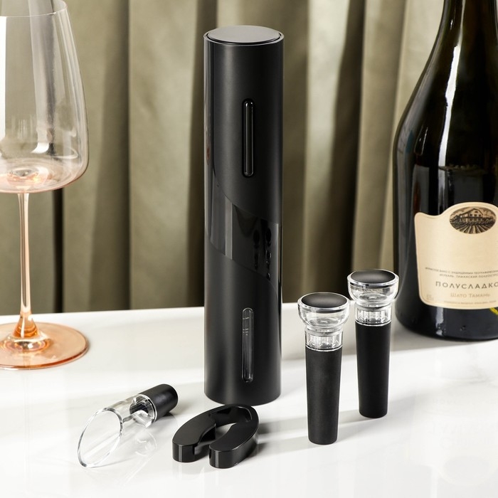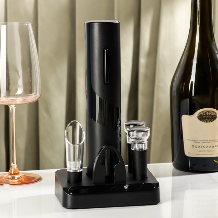 Набор для бара Opra black, 5 предметов: штопор электрический, каплеуловитель, пробка, нож для обрезания фольги