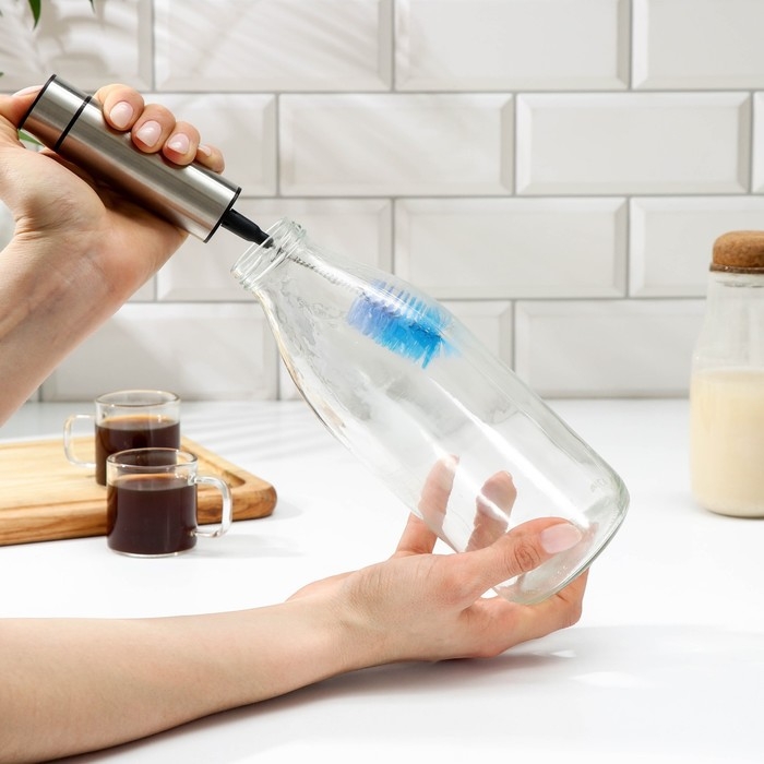 В комплекте удобный ёршик для чистки бутылок и бокалов.