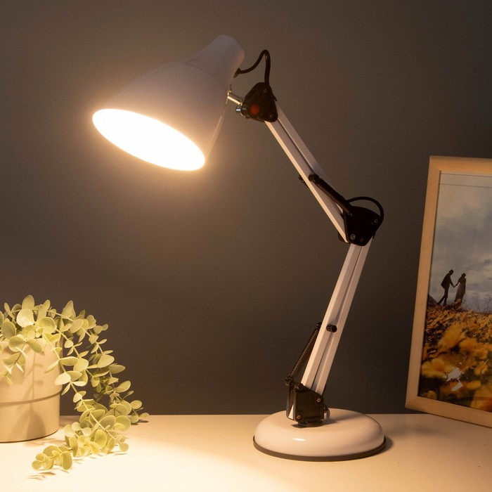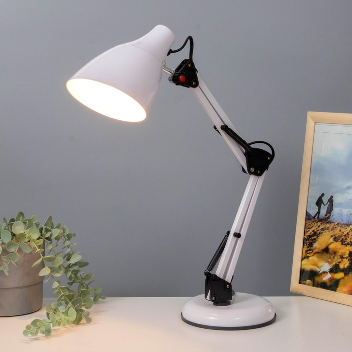 Лампа настольная Е27 60 Вт "Валли" белая шарнирная 43х21х14,5 см RISALUX
