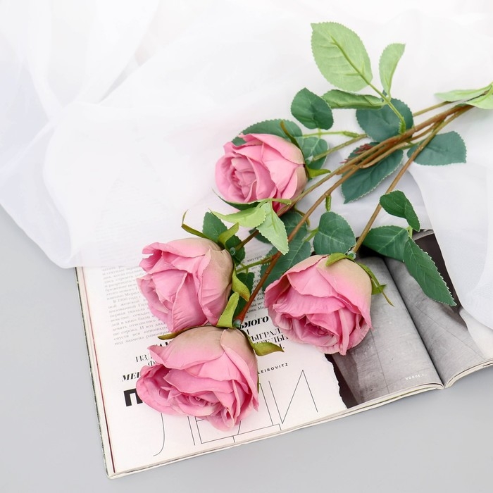 Цветы искусственные "Роза Блю Парфюм" d-5 см 60 см, тёмно-розовый