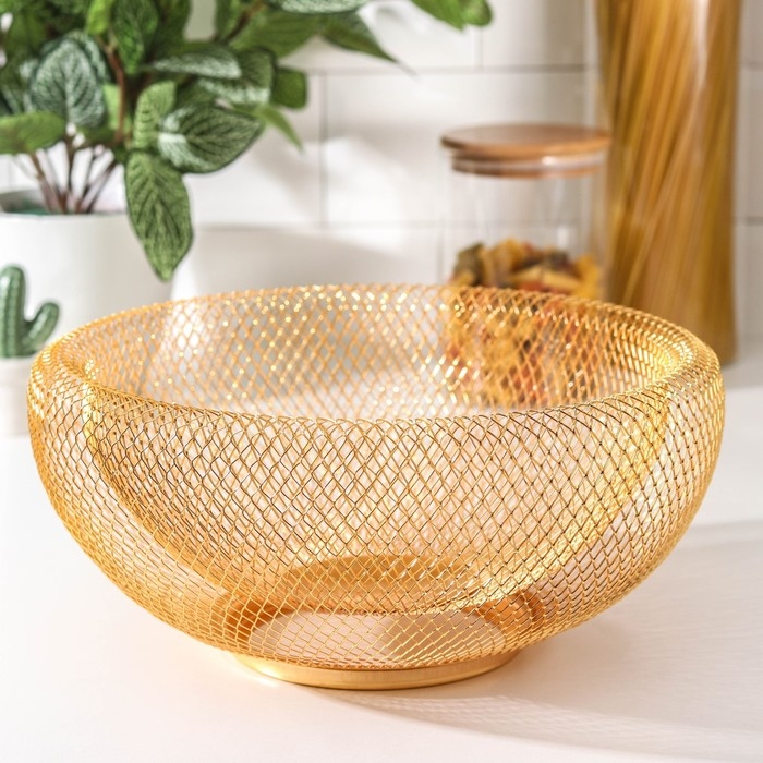 Ваза для фруктов «Сплетение», 30×30×13, цвет золотой