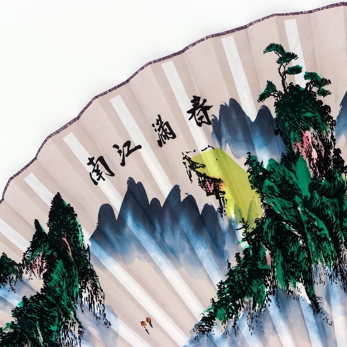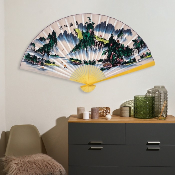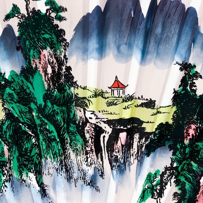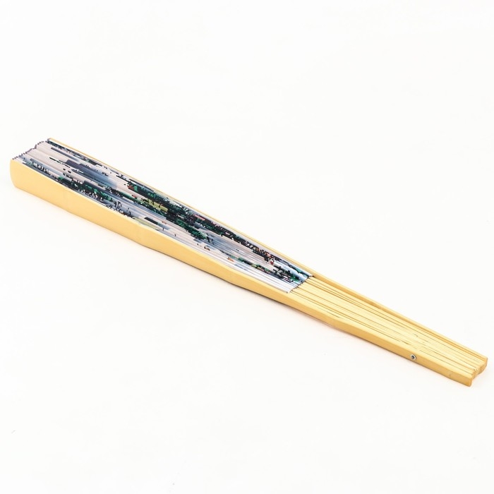 Веер бамбук, текстиль h=90 см "Река и горы" белый
