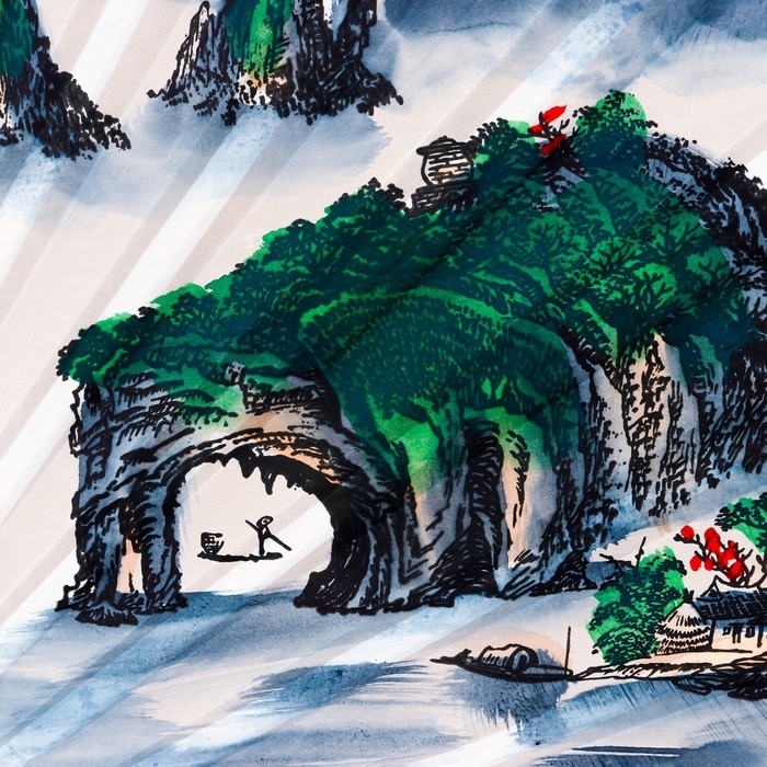 Веер бамбук, текстиль h=90 см "Зелёные горы" белый