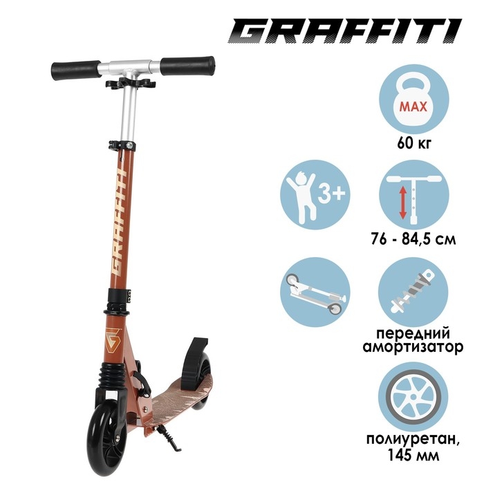 Самокат GRAFFITI, складной, колёса PU 145 мм, ABEC 7, амортизатор передний, алюминиевый