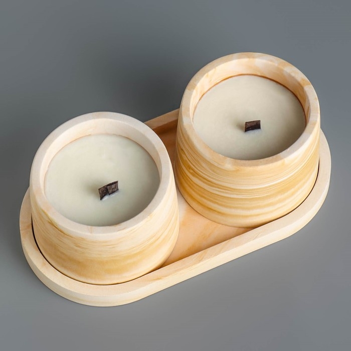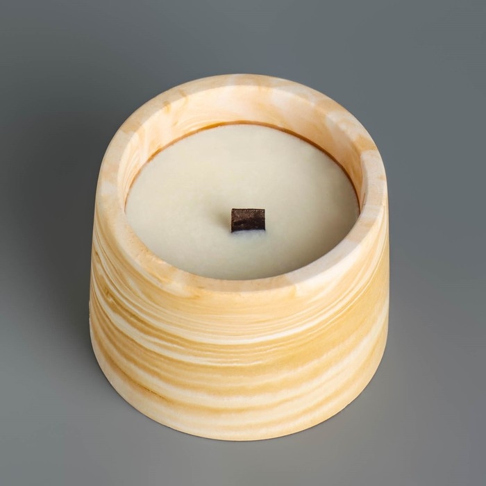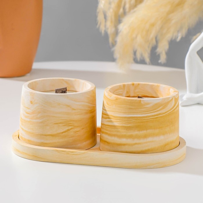 Свечи в бетоне на подставке "Лофт", соевый воск, деревянный фитиль, бело-горчичная