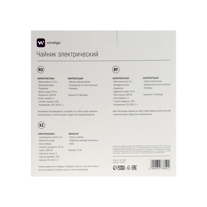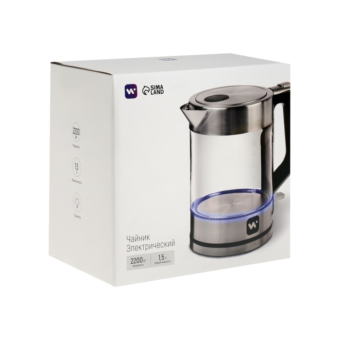 Чайник электрический Windigo LSK-1806, стекло, 1.5 л, 2200 Вт