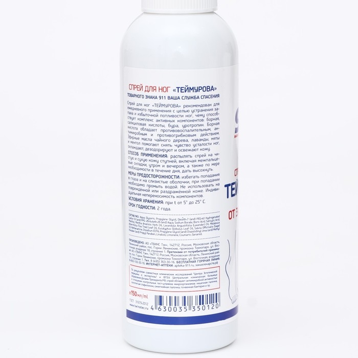 Спрей для ног "Теймурова" антибактериальный эффективно устраняет неприятный запах и предотвращает его повторное появление.