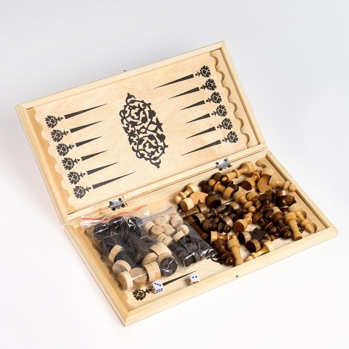 Настольные игры 3 в 1: нарды, шахматы, шашки, деревянные, большие, 40 х 40 см