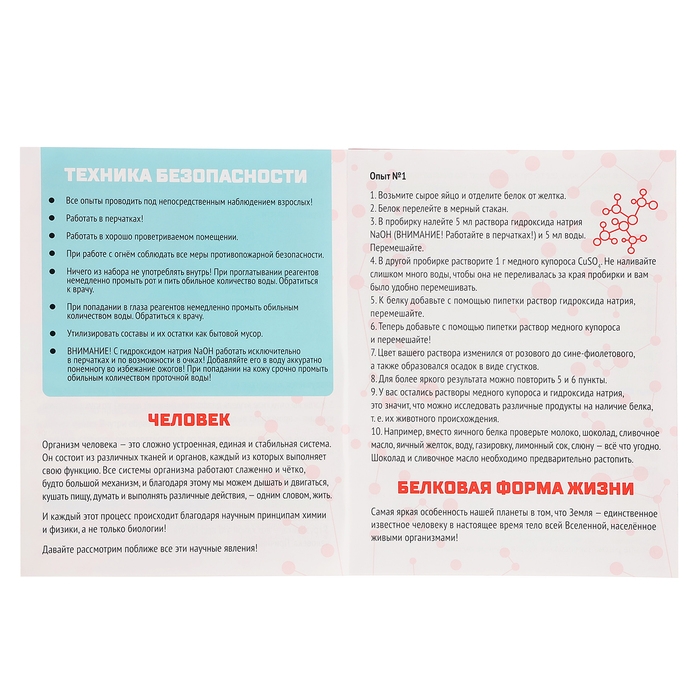 Юный исследователь проведёт 10 опытов, рассказывающих об особенностях человеческого тела, а именно: