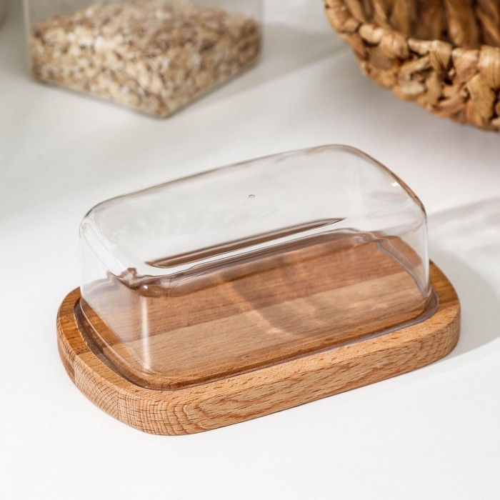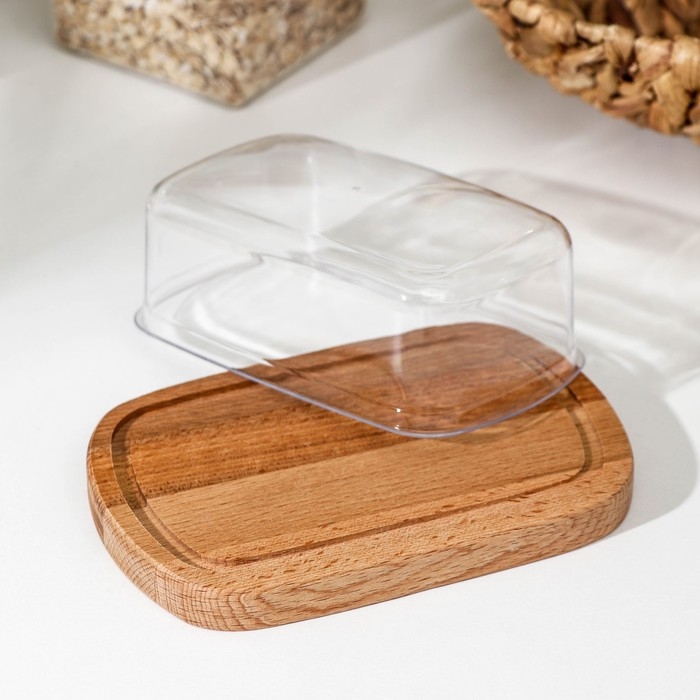 Маслёнка - сырница с крышкой Adelica, 17×11×6,5 см, бук