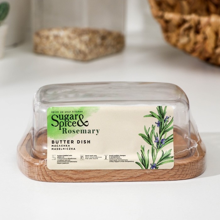 Маслёнка предназначена для хранения сливочного масла в холодильнике и подачи на стол. Основание маслёнки изготовлено из бука. Деревянная поверхность обработана маслом безопасным для пищи, что снижает риск проникновения запахов внутри древесины и продлевает срок службы. Прозрачная крышка позволяет видеть содержимое. Чтобы маслёнка сохраняла свои качества, её не рекомендуется мыть в посудомоечной машине, а также нельзя греть в микроволновой печи и замачивать на длительное время в воде. Рекомендуем мыть изделие тёплой водой с мыльным раствором. После мытья тщательно просушить. Каждые 2-3 месяца, доску необходимо покрывать пищевым маслом.