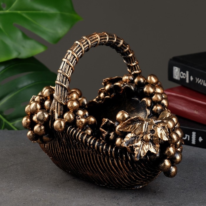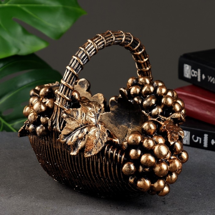 Подставка под бутылку "Корзина с виноградом" бронза с позолотой, 20х25х22см