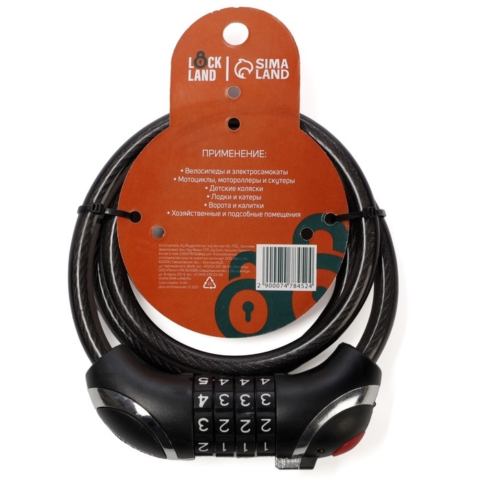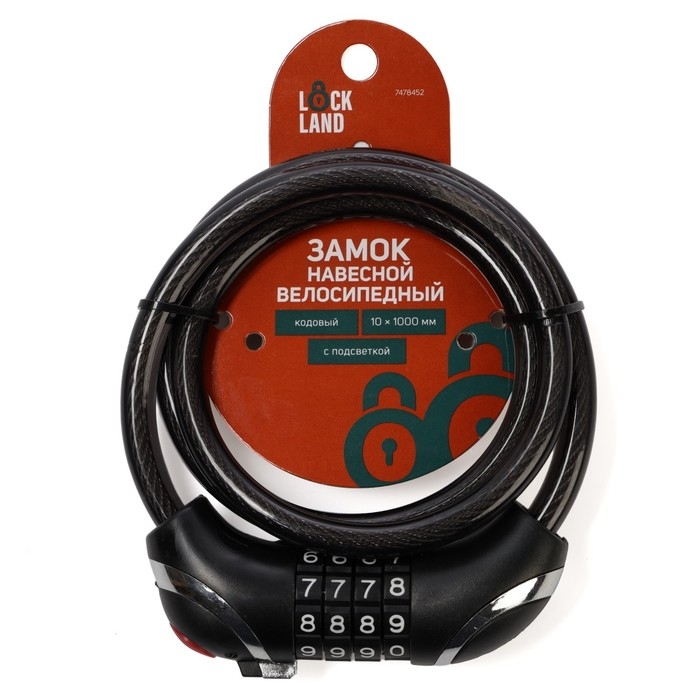 Замок навесной велосипедный LOCKLAND, кодовый, с подсветкой 10х1000 мм