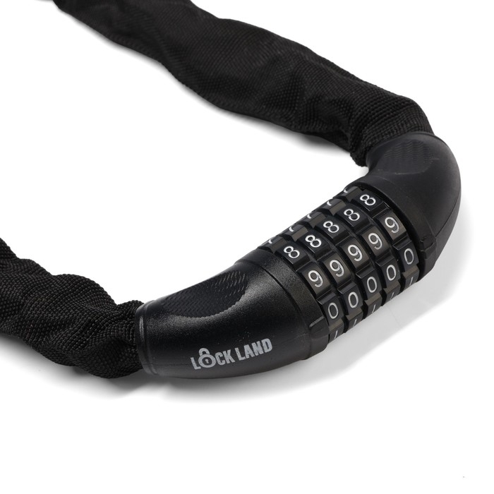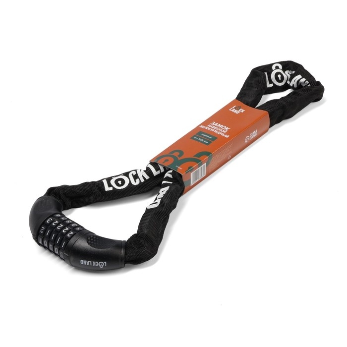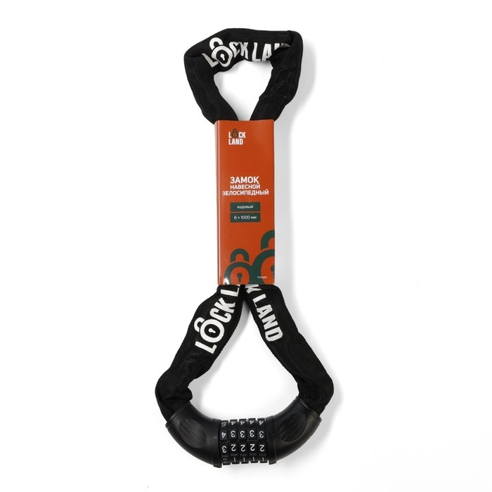 Замок навесной велосипедный LOCKLAND, кодовый, 6 х 1000 мм, цепь, цвет черный