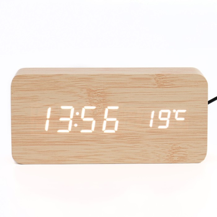 Часы настольные электронные из МДФ с будильником, тремометром и с возможностью голосового управления представлены в современном дизайне с имитацией натурального дерева. Интерьерные часы станут прекрасным декором для дома и дачи, их можно поставить как на прикроватную тумбочку в спальне, детской комнате, гостиной так и на стол или на комод в зале, холле или на кухне. Часы настольные обладают громким будильником, ребенку и вам будет комфортно просыпаться, на работу и в школу. Будильник не требует частой замены батареек благодаря экономичному механизму.