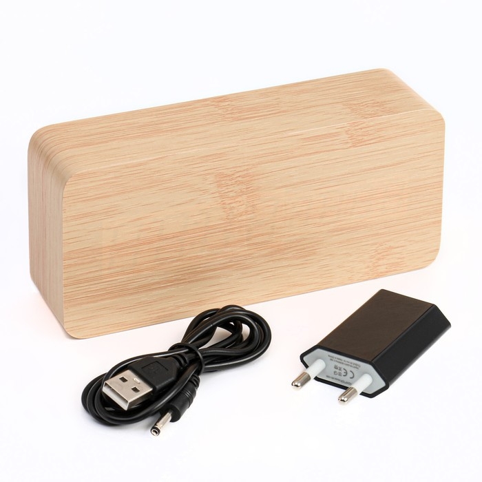 Часы - будильник электронные "Цифра-Т" настольные с термометром, деревянные, ААА, USB