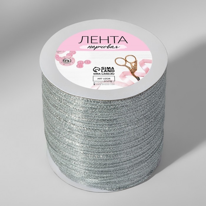 Лента парчовая, 6 мм, 500 ± 1 м, цвет серебряный