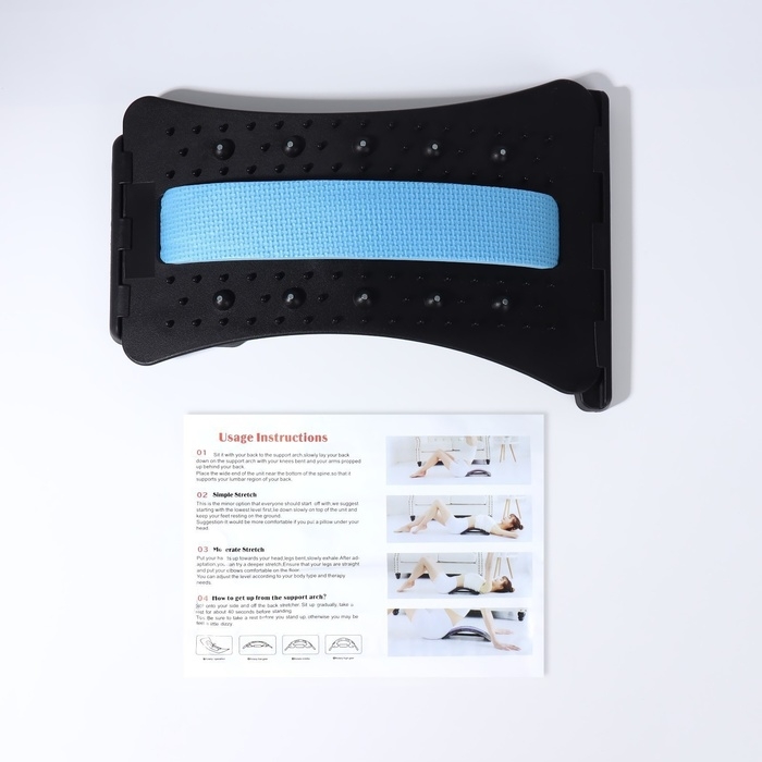 Изделие рекомендуется устанавливать на твёрдой поверхности. Трёхуровневая конструкция позволяет использовать массажёр как новичкам, так и профессионалам. Начинать всегда следует с первого уровня, поднимая высоту мостика по мере привыкания. Это позволит избежать дискомфорта, расслабиться и получать удовольствие во время процедуры. Используйте массажёр по 5–10 минут 1–2 раза в день. После немного полежите на кровати или лягте спать.