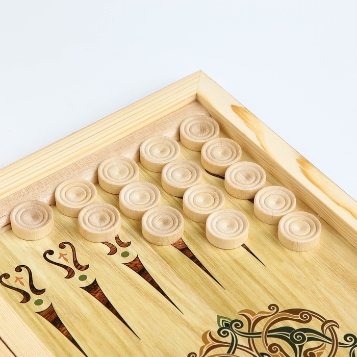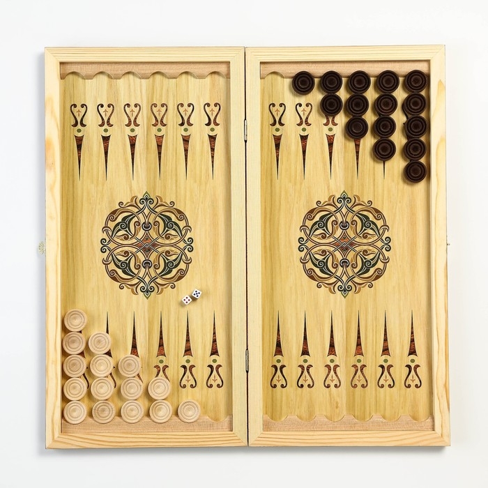 Нарды деревянные большие, настольная игра "Узор", 40 х 40 см, с полем для игры в шашки