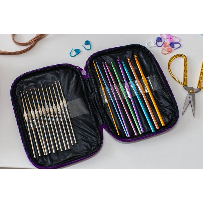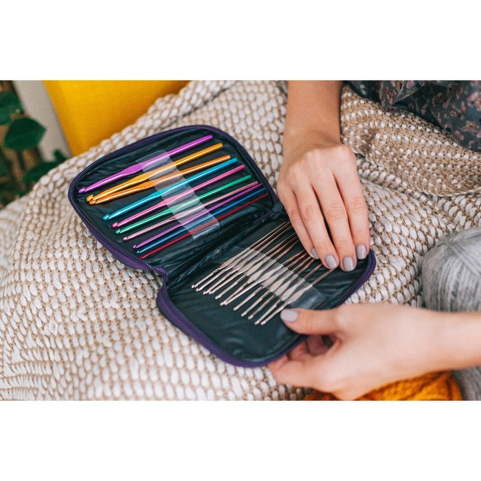 Набор крючков для вязания, d = 0,6-6,5 мм, 12,5/15 см, 22 шт, цвет МИКС