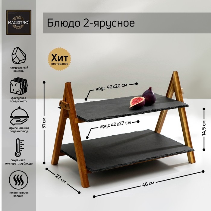 Блюдо из сланца Magistro Valley, 2-ярусное