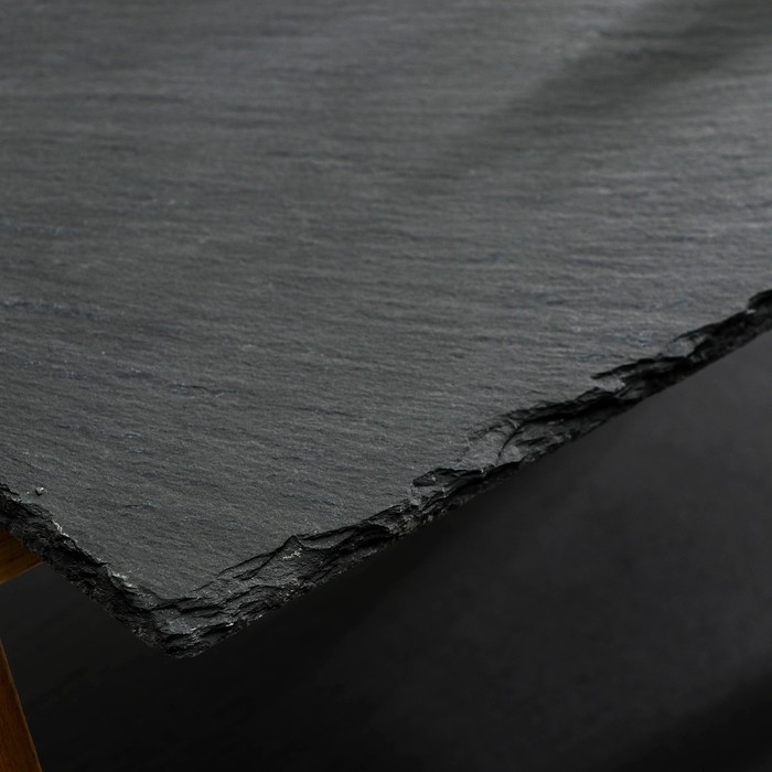 Этот минерал имеет красивую внешнюю и внутреннюю текстуру. Благодаря внутренней пористой структуре посуда из него не тяжёлая. Эксперты в сервировке часто выбирают сланцевую посуду как экологичную и очень эстетичную.
