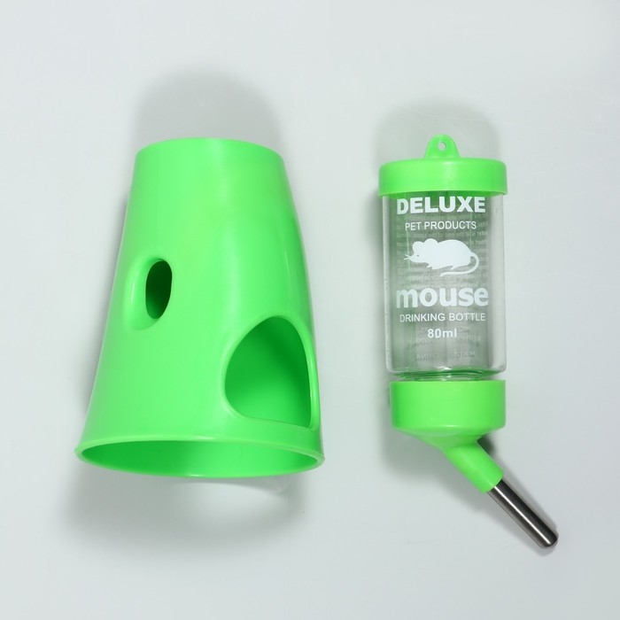 Поилка 80 мл с основанием-домиком для мелких грызунов, 8 х 8 х 16,5 см, зелёная