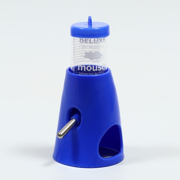 Поилка 80 мл с основанием-домиком для мелких грызунов, 8 х 8 х 16,5 см, синяя