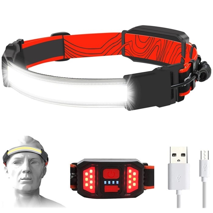 Фонарь налобный аккумуляторный, 5 Вт, 1200 мАч, COB, USB, 12 х 6 х 5 см