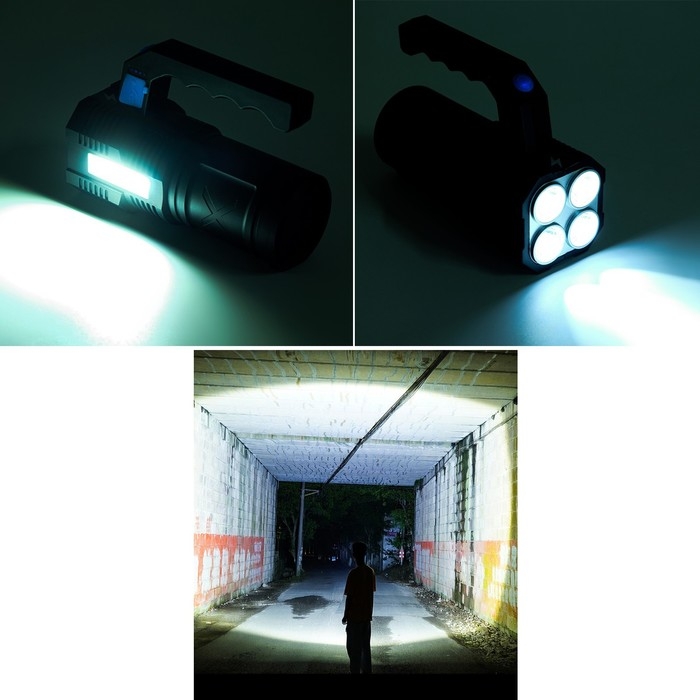 Фонарь светодиодный аккумуляторный ручной, 10 Вт, 3500 мАч, XPE + COB, 350 лм, USB, 15х6 см