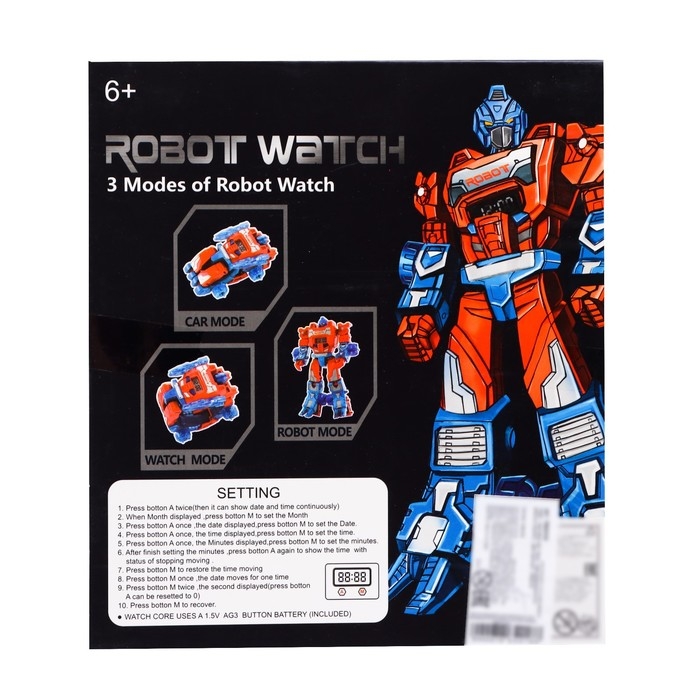 Робот-трансформер «Часы» это не простая детская игрушка, а ещё и настоящие электронные часы и робот два в одном! Яркие сочные цвета и увлекательный процесс трансформирования из часов в робота и обратно не дадут ребенку заскучать. Постоянная работа с деталями развивает мелкую моторику.