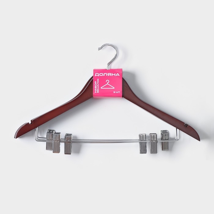 Плечики - вешалки для брюк и юбок Доляна, 45×27 см, 3 шт, с зажимами, деревянные сорт С, широкие плечики
