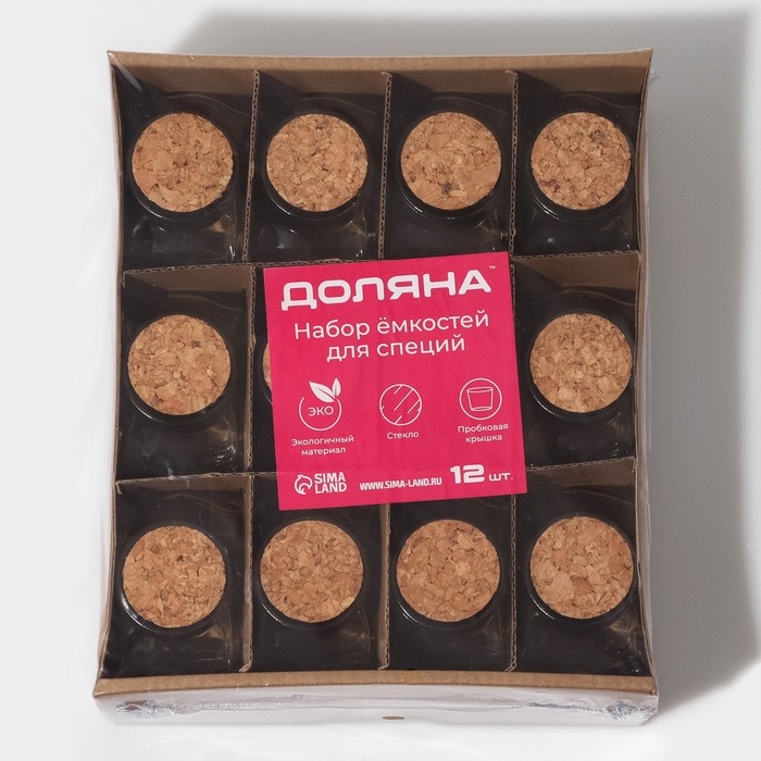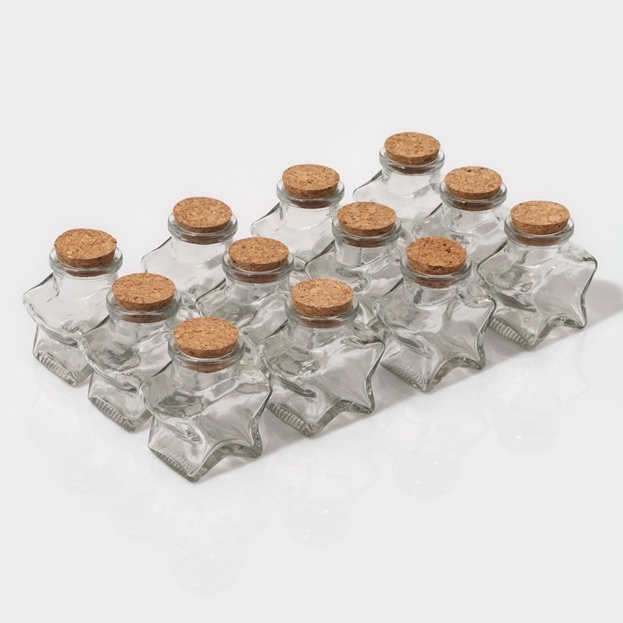 Набор стеклянных баночек для сыпучих продуктов с пробковой крышкой Доляна «Парфе. Звезда», 50 мл, 6,6×6,8×3,9 см, 12 шт
