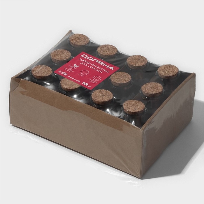 Набор баночек стеклянных для специй с пробковой крышкой Доляна «Парфе», 180 мл, 11×5 см, 12 шт