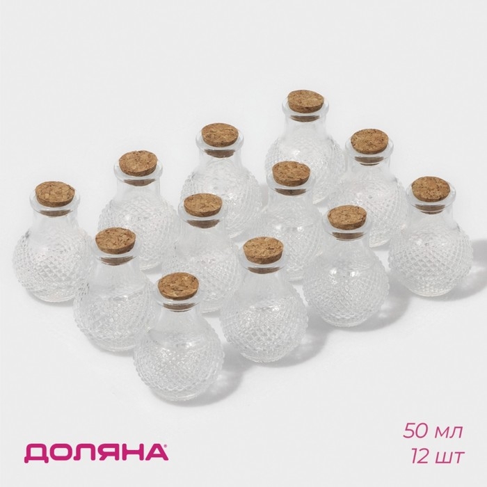 Набор баночек стеклянных для специй с пробковой крышкой Доляна «Парфе», 50 мл, 5,5×5,5×7 см, 12 шт
