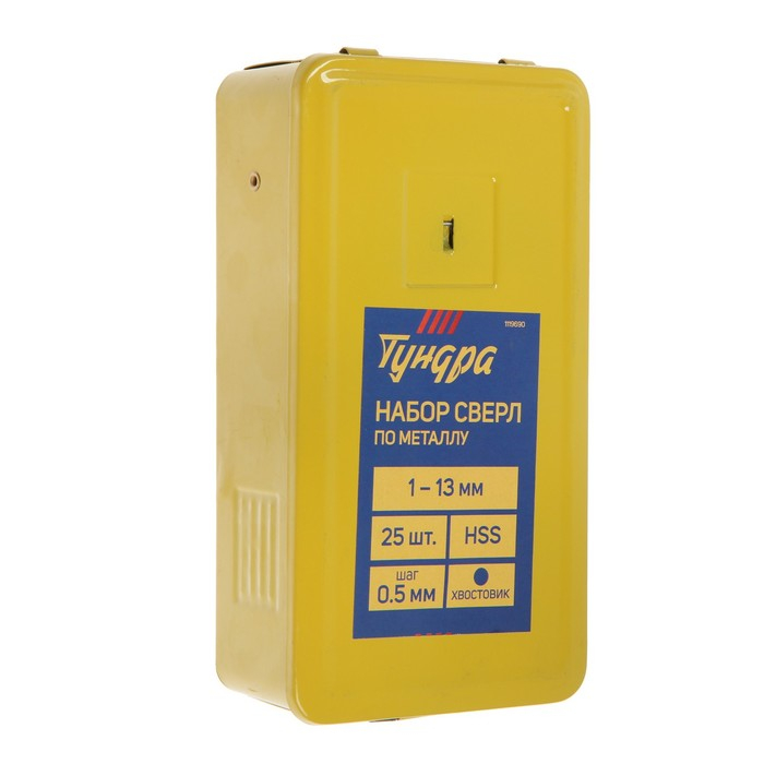 Набор сверл по металлу ТУНДРА, HSS, цилиндрический хвост., 1 - 13 мм (через 0.5 мм), 25 шт.