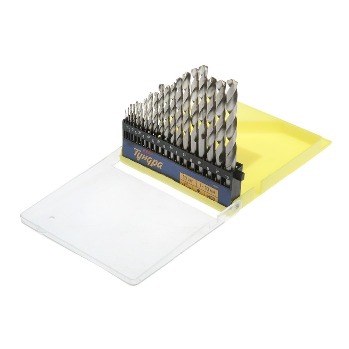 Набор сверл по металлу ТУНДРА, HSS, цилиндрический хвост., 1 - 10 мм (через 0.5 мм), 19 шт.