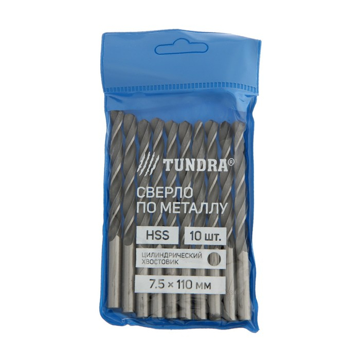 Сверло по металлу ТУНДРА, HSS, цилиндрический хвостовик, 7.5 х 110 мм, 10 шт.