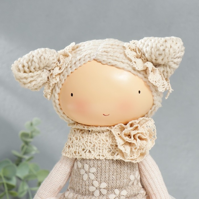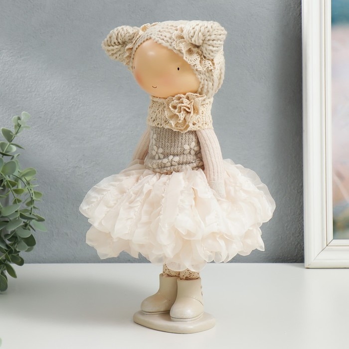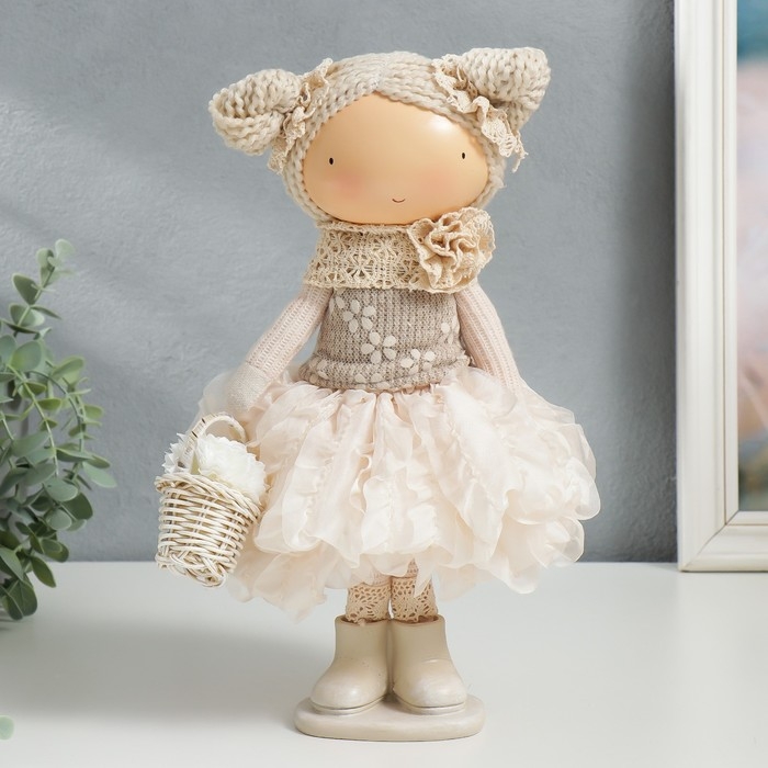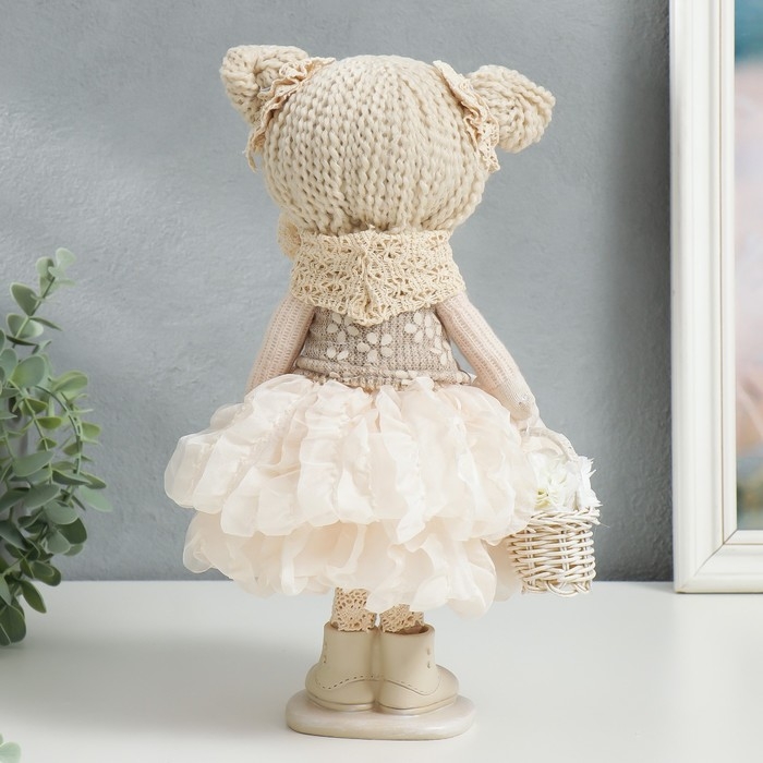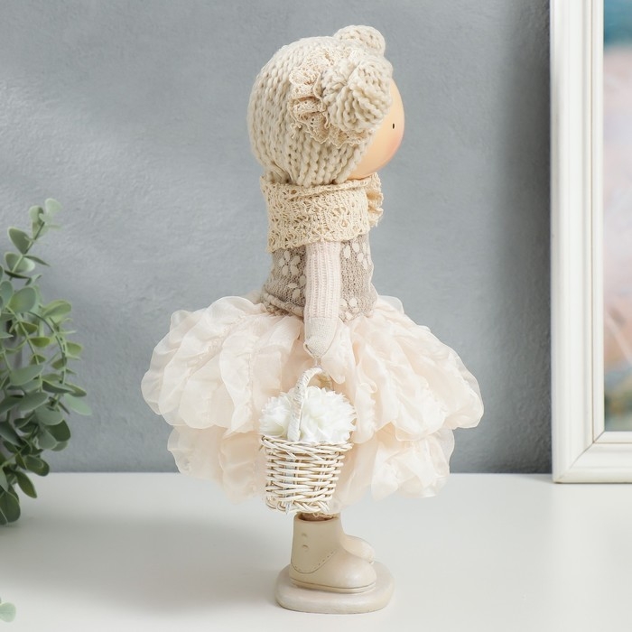Кукла интерьерная "Малышка Зося в бежевом наряде, с корзиной цветов" 31x14x16 см