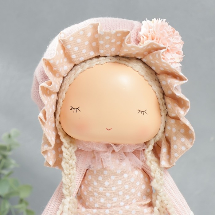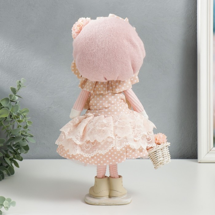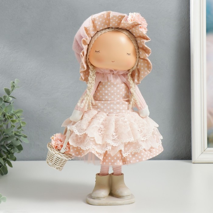 Кукла интерьерная "Малышка в чепчике и платье в горох, с корзиной цветов" 36х14х16 см