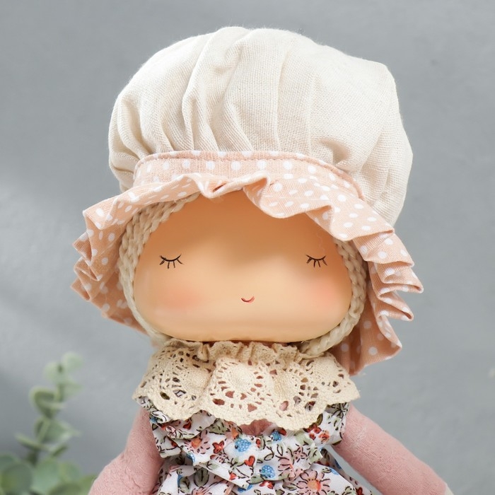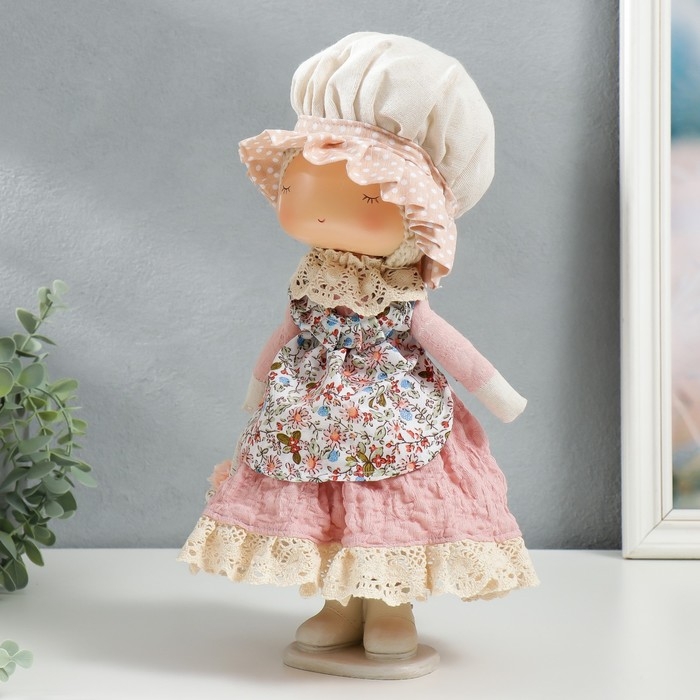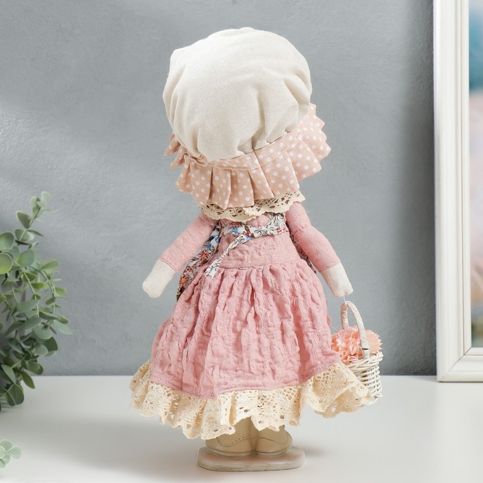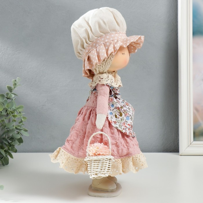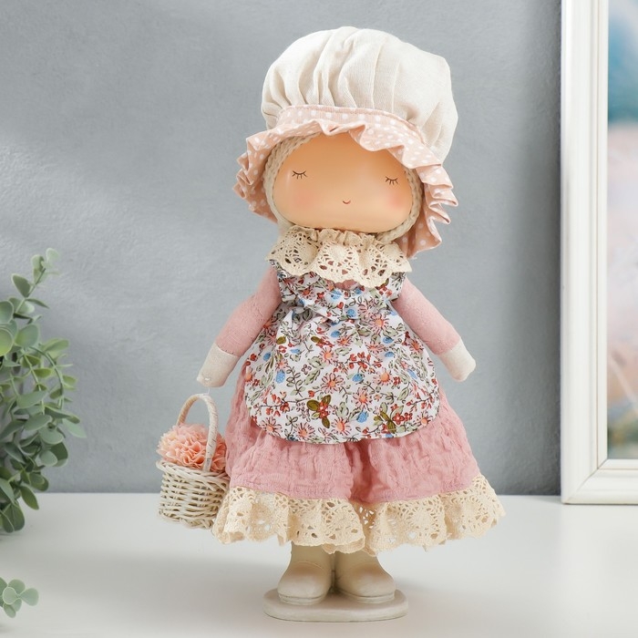 Кукла интерьерная "Малышка в чепчике и переднике цветочном, с корзиной цветов" 33х14х16 см
