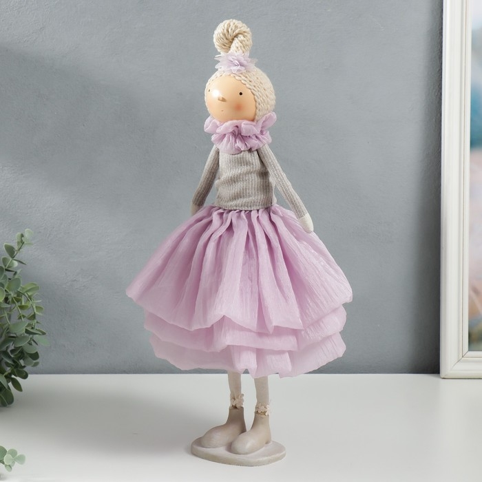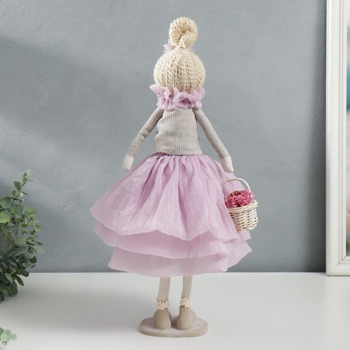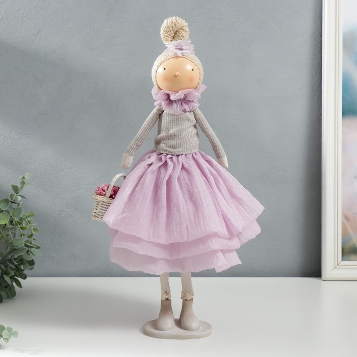 Кукла интерьерная "Малышка в сиреневом наряде, с корзиной цветов" 45,5х17х19 см