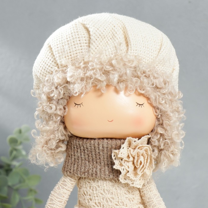 Кукла интерьерная "Малышка в берете, в бежевом наряде, с цветком" 36,5х13х17 см