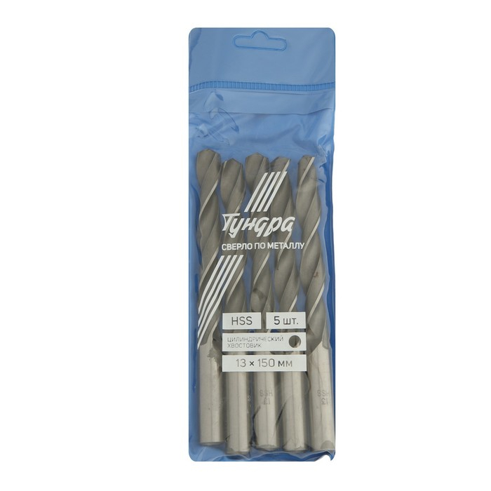 Сверло по металлу ТУНДРА, HSS, цилиндрический хвостовик, 13 х 150 мм, 5 шт.