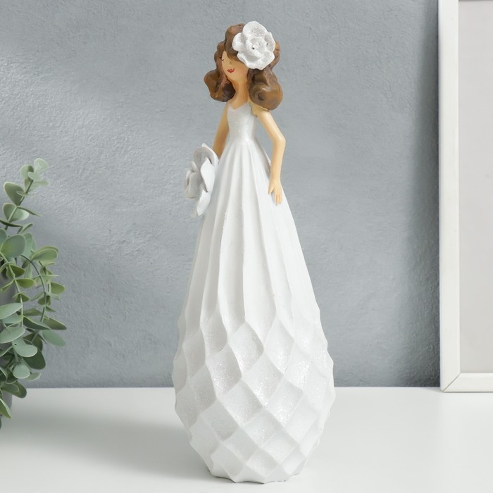 Сувенир полистоун "Малышка с цветком в волосах, в белом сарафане, с цветком" 30х11,5х11 см