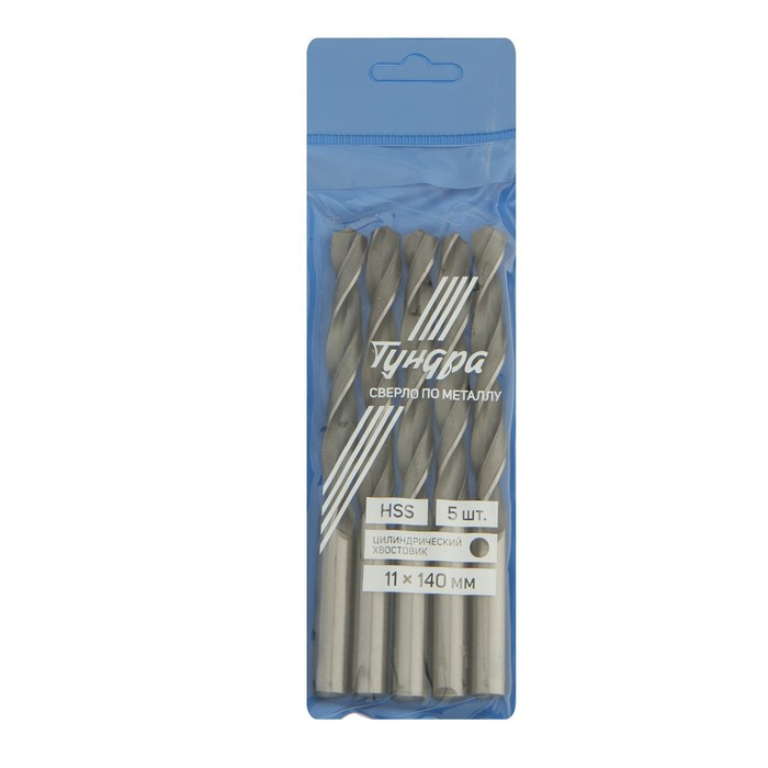 Сверло по металлу ТУНДРА, HSS, цилиндрический хвостовик, 11 х 140 мм, 5 шт.